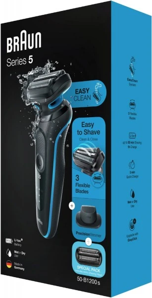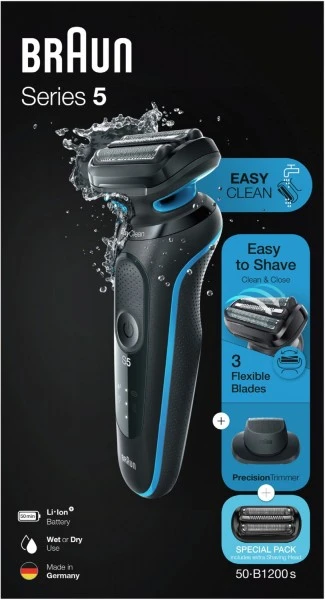 Schreibe die erste Rezension fĂŒr âBraun 50-B1200s Series 5 + Scherteil Rasierer Schwarz/blauâ Antwort abbrechen