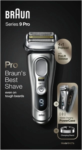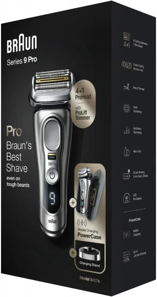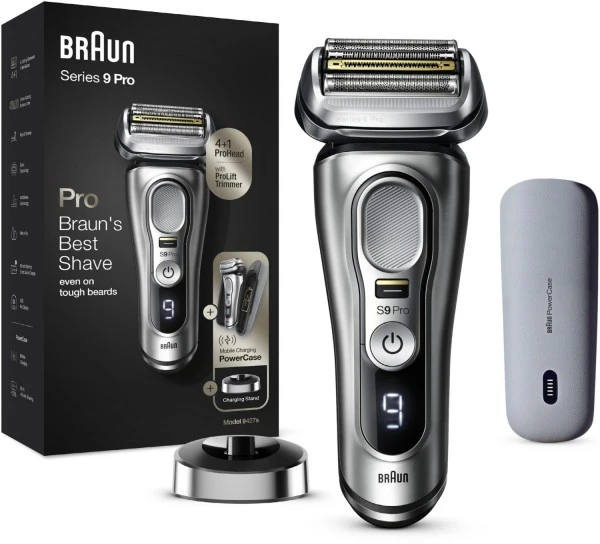 Der effizienteste elektrische Rasierer von Braun, neu erfunden, um noch besser zu sein. Der Series 9 Pro Elektrorasierer ist effizient und sanft, egal ob Sie einen 1-, 3- oder 7-Tage-Bart haben. Der Rasierer fĂŒr Herren verfĂŒgt ĂŒber den ProLift Trimmer, der lange und flach anliegende Haare anhebt und schneidet. Dieser Rasierapparat enthĂ€lt das PowerCase: ein Ladeetui, in dem Ihr Rasierer fĂŒr bis zu 6 Wochen Anwendung aufgeladen wird. Der Rasierer erfasst problemlos auch widerspenstige Haare, dank des neuen PrĂ€zisionsschalters â besonders praktisch in schwer zugĂ€nglichen Bereichen.