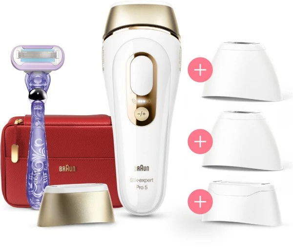 Silk-Expert Pro 5 ist das beste IPL-HaarentfernungsgerĂ€t von Braun. Es handelt sich nicht um ein Laser- HaarentfernungsgerĂ€t, sondern um eine fortschrittliche IPL-Technologie, mit der Sie bis zu 6 Monate lang von zu Hause aus eine glatte Haut erzielen und die Haare in 4 Wochen sichtbar reduziert werden. Der Skin Pro 2.0 Sensor passt sich automatisch an Ihren Hautton an und optimiert die IntensitĂ€t fĂŒr die perfekte Balance zwischen schnellen Ergebnissen und HautvertrĂ€glichkeit. 3 Sensitive-Modi ermöglichen Hautkomfort und bis zu 125 Lichtimpulse pro Minute sorgen fĂŒr weniger ausgelassene Stellen beim Gleiten auf Ihrer Haut.