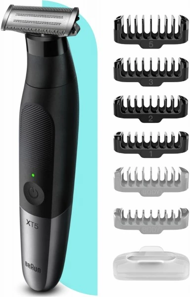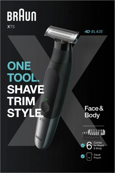 Der Braun Series XT5 ist ein Barttrimmer, Bodygroomer und Elektrorasierer für Herren – alles in einem Gerät. Die 4D-Klinge sorgt für eine einfache und komfortable Rasur, die gleichzeitig sanft zur Haut ist. Der Trimmer und Rasierer ist zu 100% wasserdicht und kann nass oder trocken verwendet werden.